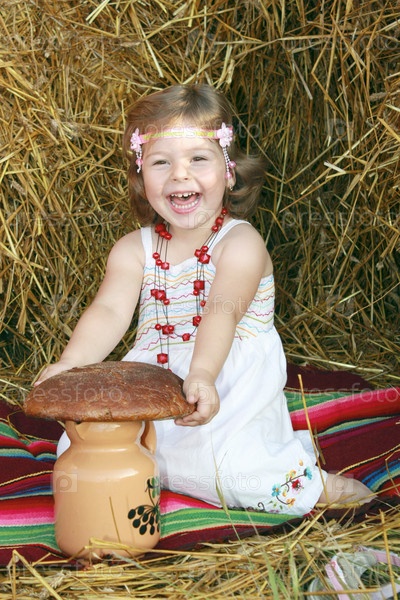 Девочка с хлебом и кувшином молока