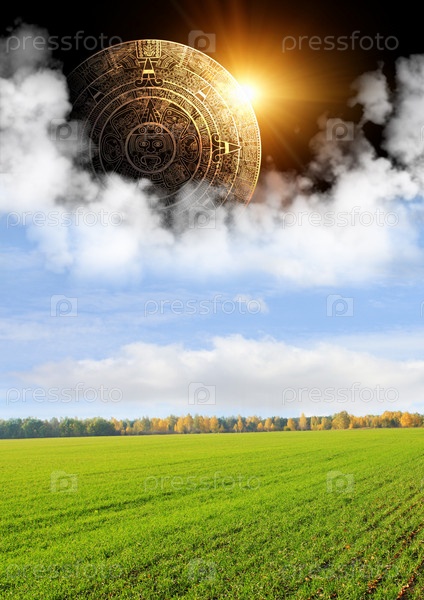 Календарь майя. Абстрактное изображение на фоне неба