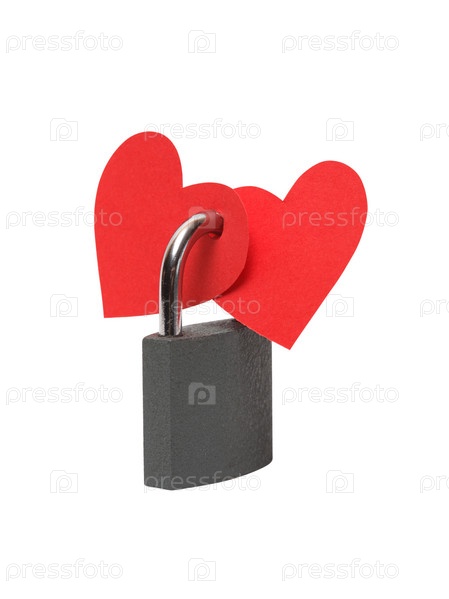 Два красных бумажных сердечка, скованные замком