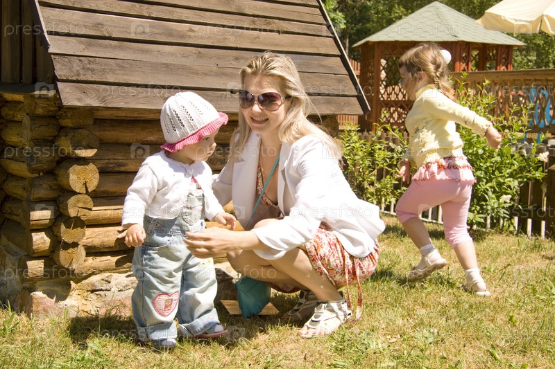 Дети, играющие с матерью на улице