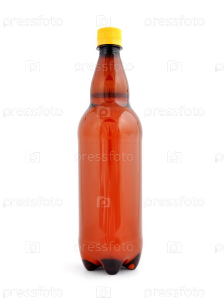 Пластиковая бутылка с пивом на белом фоне