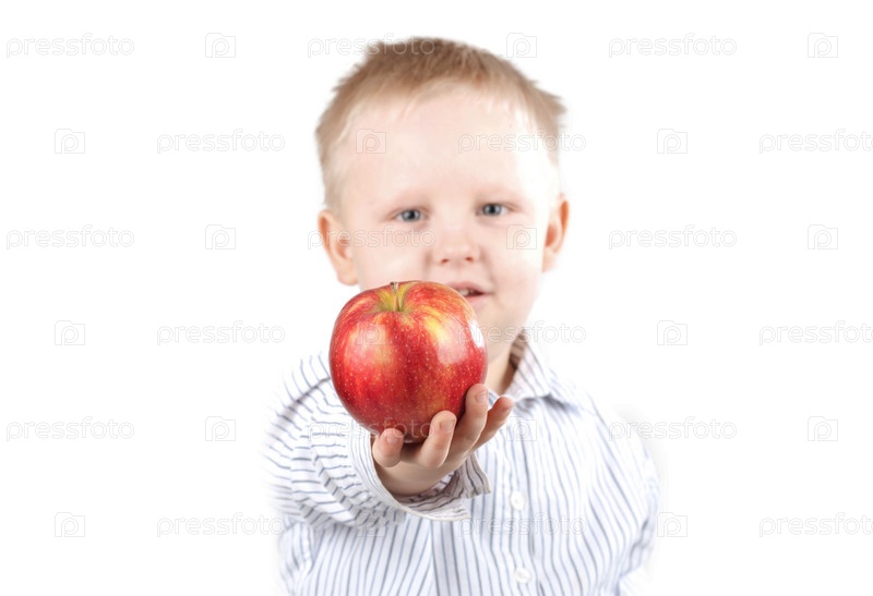 Мальчик протягивает красное яблоко