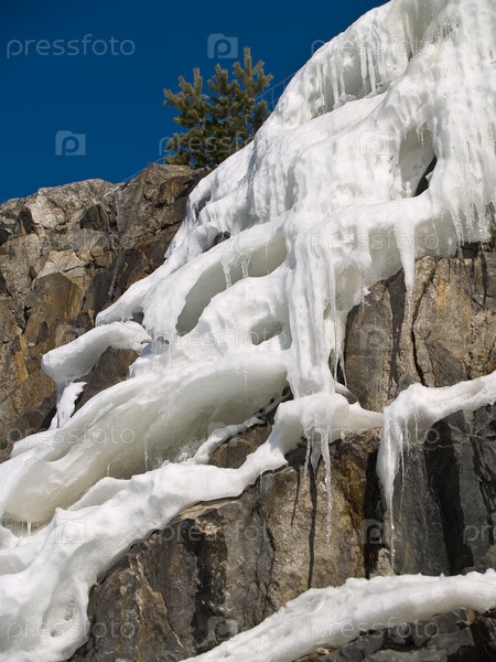 Замерзший водопад на скале