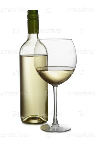 Бутылка вина и бокал, изолированные на белом фоне