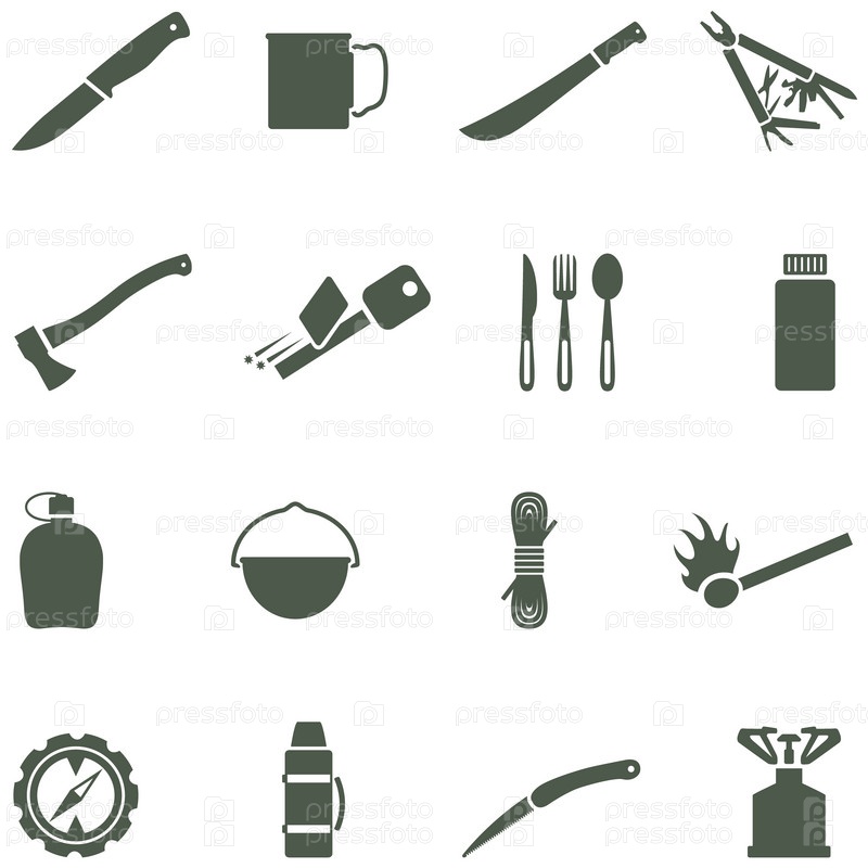 Набор векторных иконок, снаряжение для путешествий