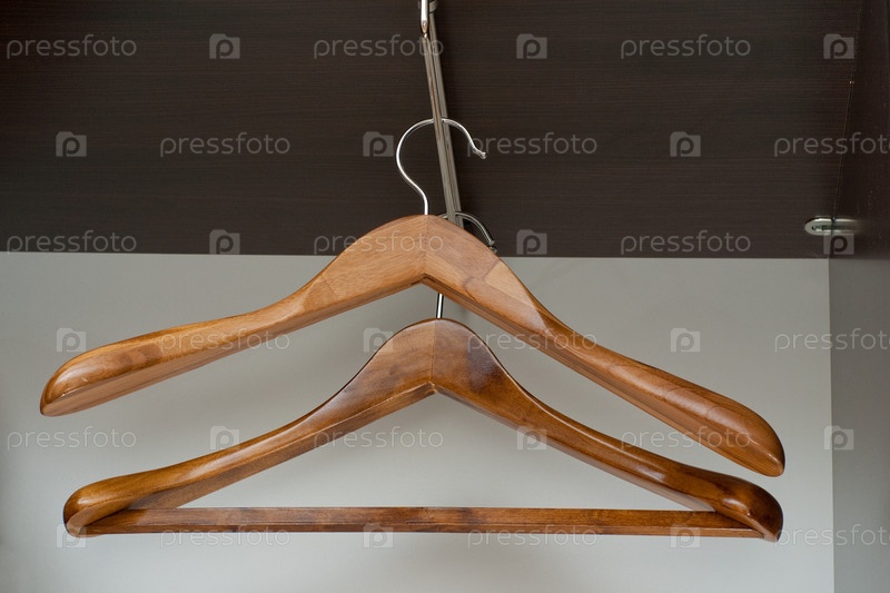 Пара деревянных вешалок в пустом гардеробе