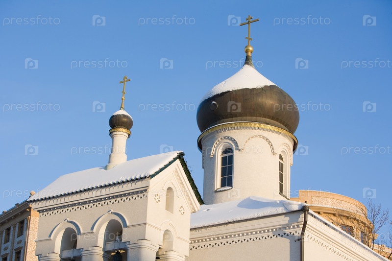 Церковь Покрова Пресвятой Богородицы на фоне голубого неба