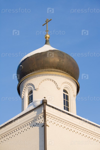 Церковь Покрова Пресвятой Богородицы на фоне голубого неба