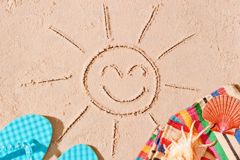 Радостное солнце и пляжные аксессуары