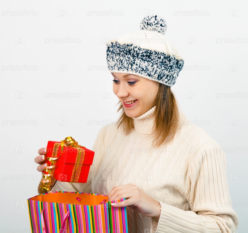 Молодая красивая женщина с подарками