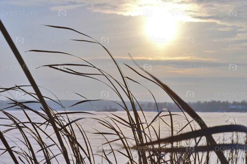 Трава на берегу зимой