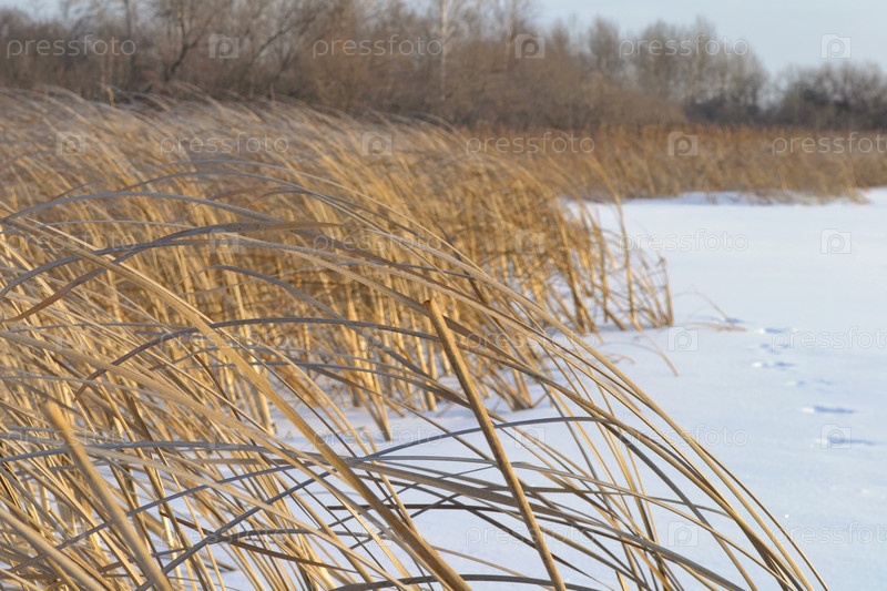 Трава на берегу зимой