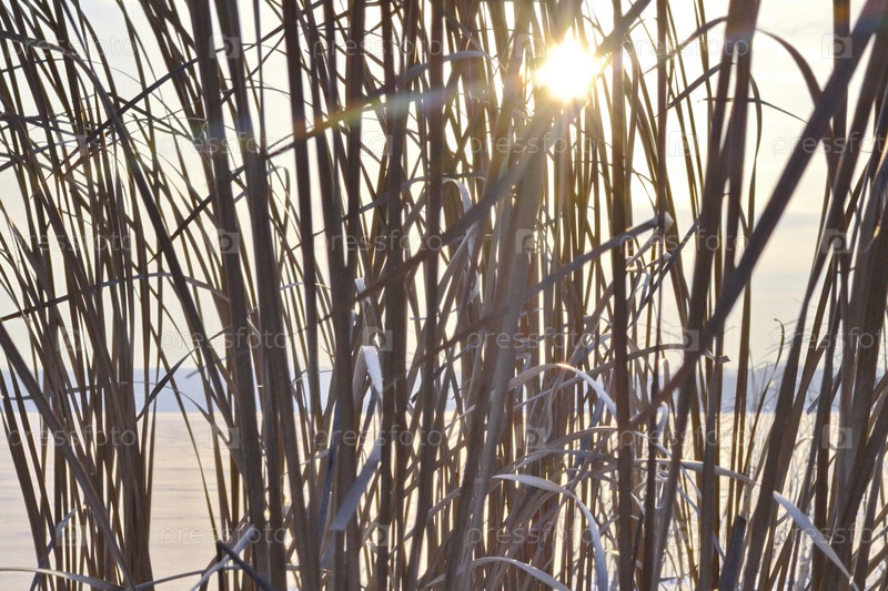 Трава на берегу зимой