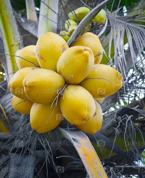 Желтые кокосы на пальме