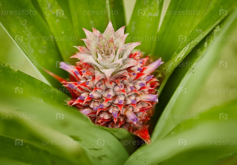 Маленький красный ананас на кусте