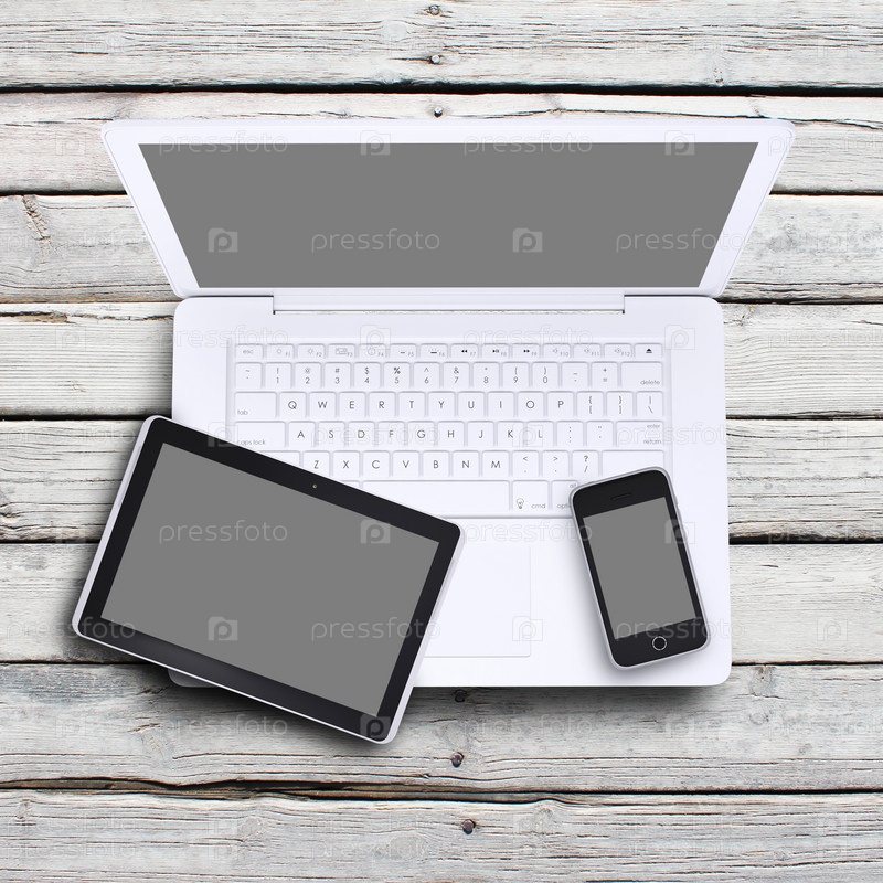 Ноутбук, планшетный компьютер и смартфон