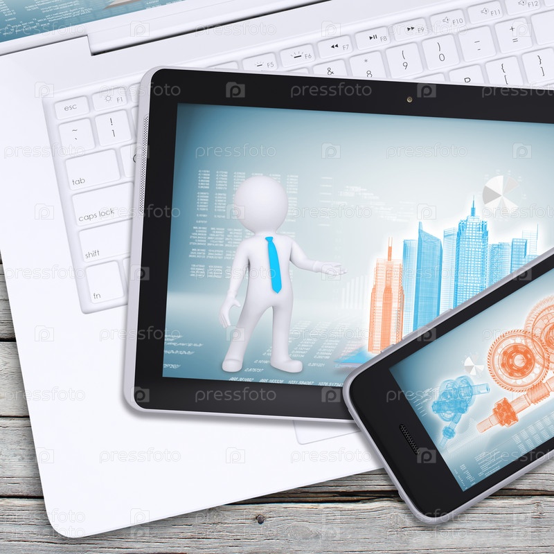Ноутбук, планшетный компьютер и смартфон
