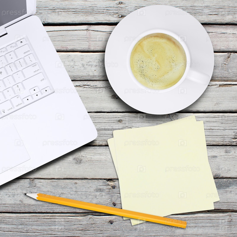 Ноутбук и чашечка кофе с пенкой