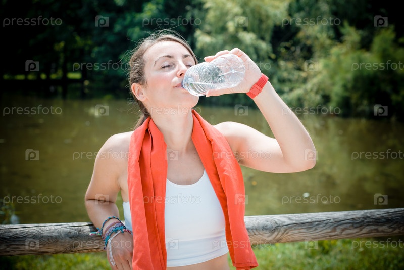 Красивая женщина пьет воду