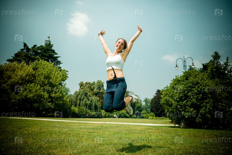 Красивая спортивная женщина прыгает