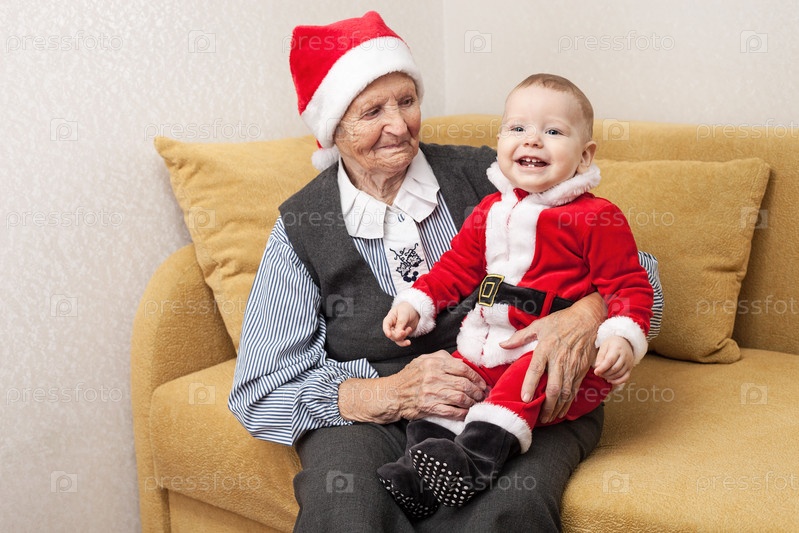 Мальчик в костюме Санты со своей бабушкой