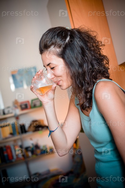 Красивая женщина пьет пиво