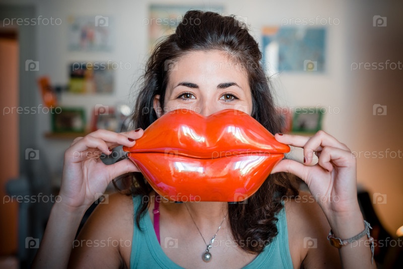 Красивая женщина с пластиковыми губами