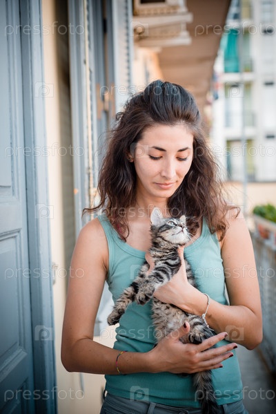 Красивая женщина с кошкой