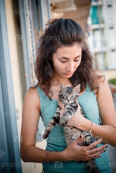Красивая женщина с кошкой