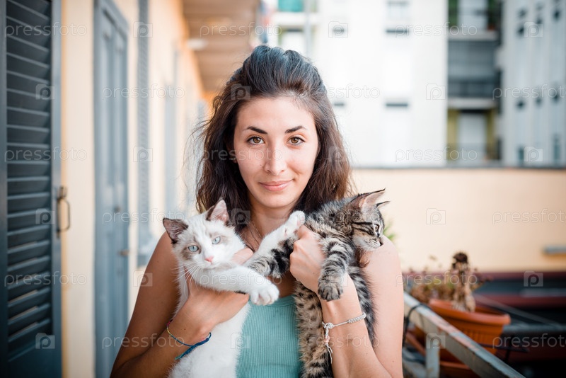 Красивая женщина с кошкой