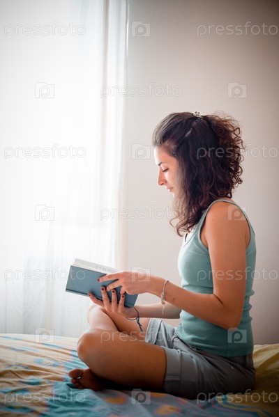 Красивая женщина читает в постели