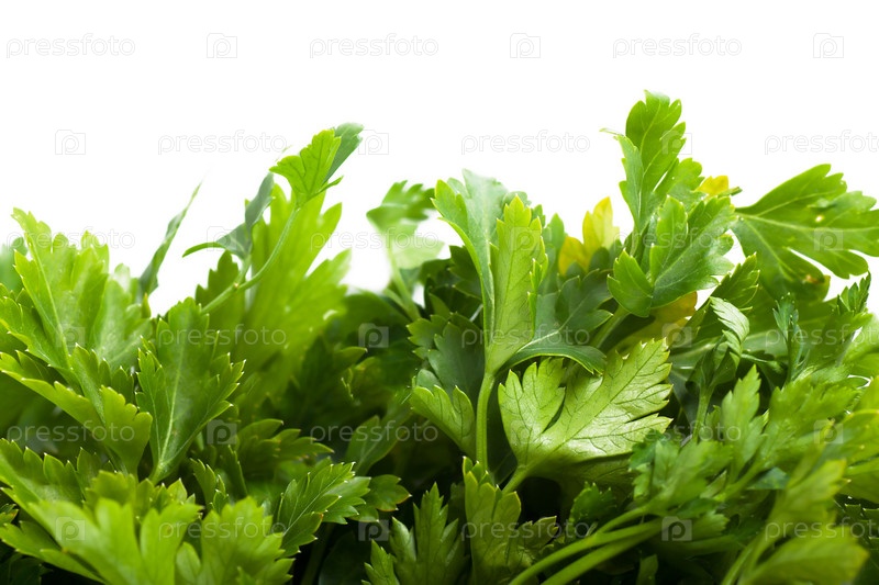 Зеленые листья петрушки на белом фоне