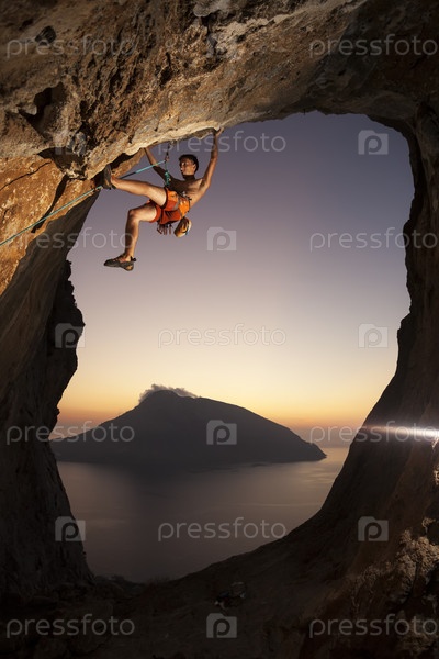 Скалолаз на скале. Остров Калимнос, Греция