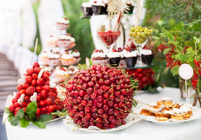 Сладкий бар с ягодами и пирожными