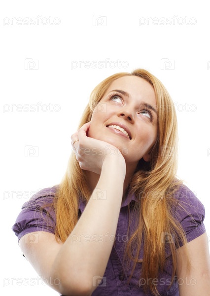Веселая девушка смотрит вверх