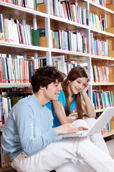 Парень с девушкой в библиотеке
