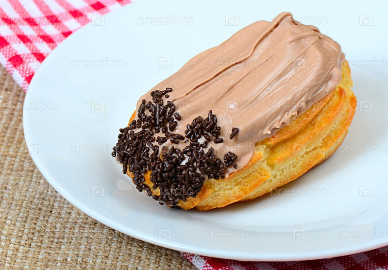Эклер с кремом на тарелке