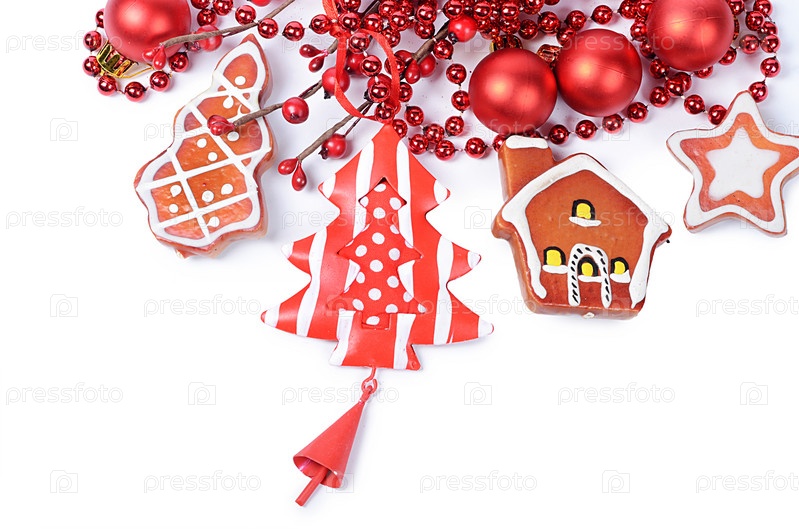 Елочные украшения, изолированные на белом