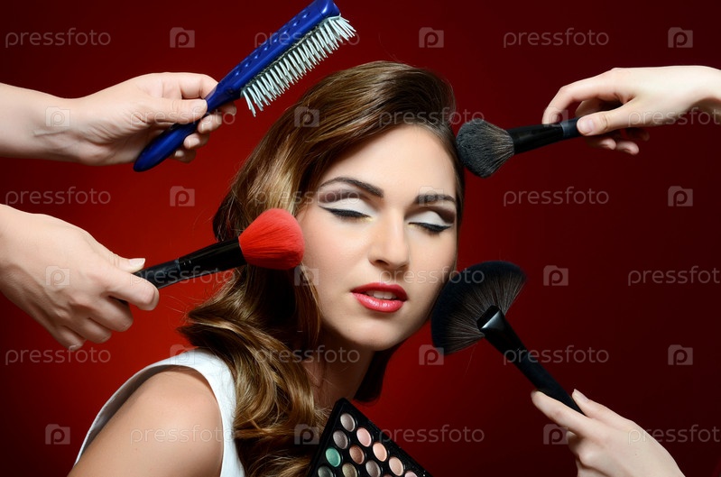 Красивая девушка с кистями для макияжа