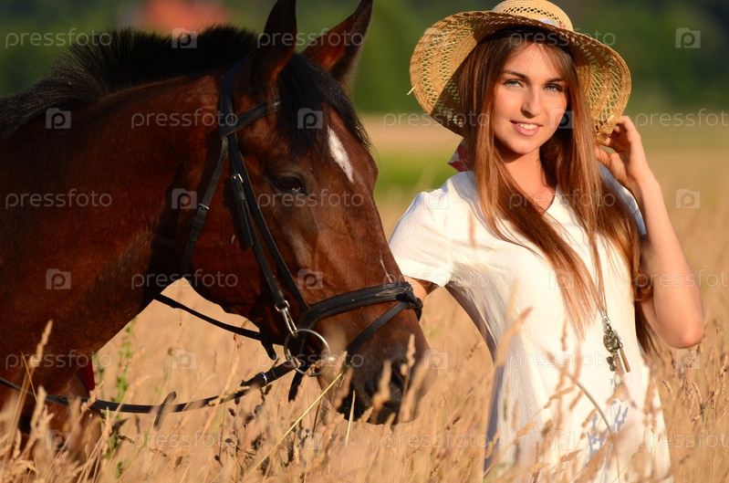 Женщина на лошади в поле