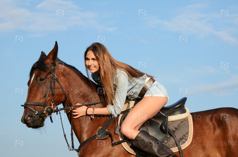 Женщина на на лошади на фоне неба