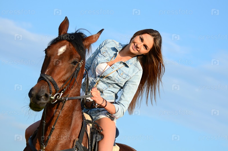 Женщина на на лошади на фоне неба