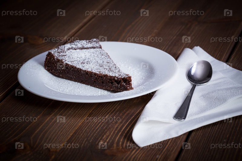 Шоколадный торт на белой тарелке