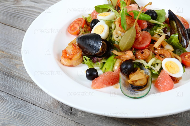 Салат с кальмарами, филе тунца, мясом мидий