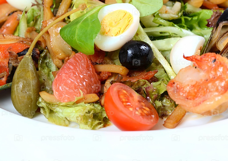 Салат с кальмарами, филе тунца, мясом мидий