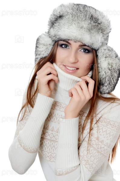 Красивая девушка в шапке, изолированная на белом фоне