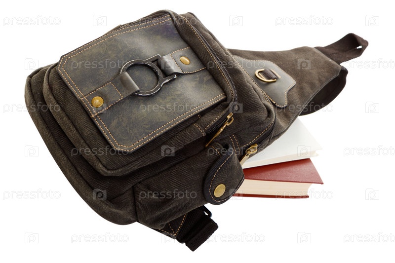 Рюкзак и книги на белом фоне