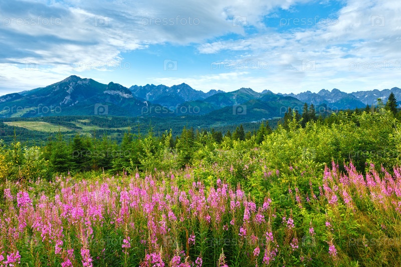 Розовые цветы на поле летним утром (Польша)