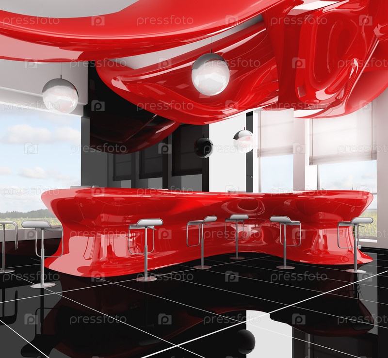 Рецепция в современном отеле, 3D-изображение