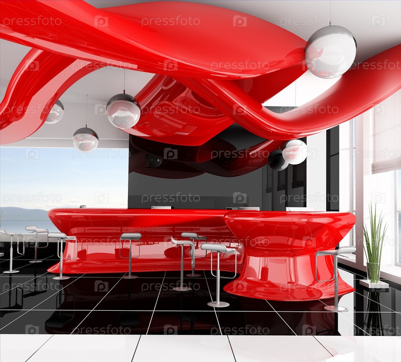Рецепция в современном отеле, 3D-изображение